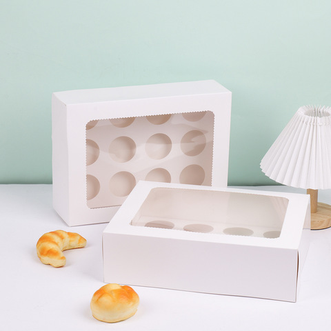 1 2 4 6穴カスタムPvcウィンドウ折りたたみ可能ホワイトペーパーボックスミニカップケーキマフィンカップケーキ包装ウェディングケーキボックス